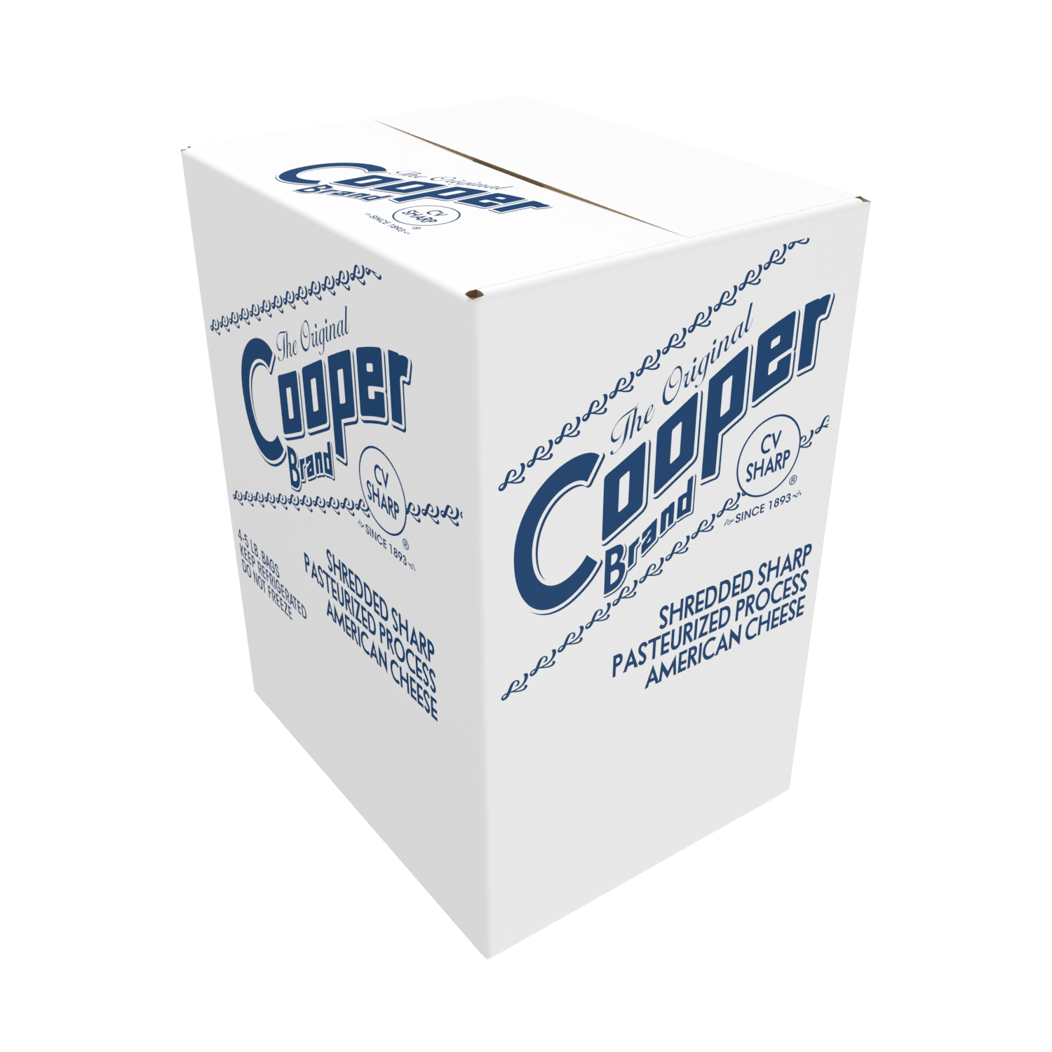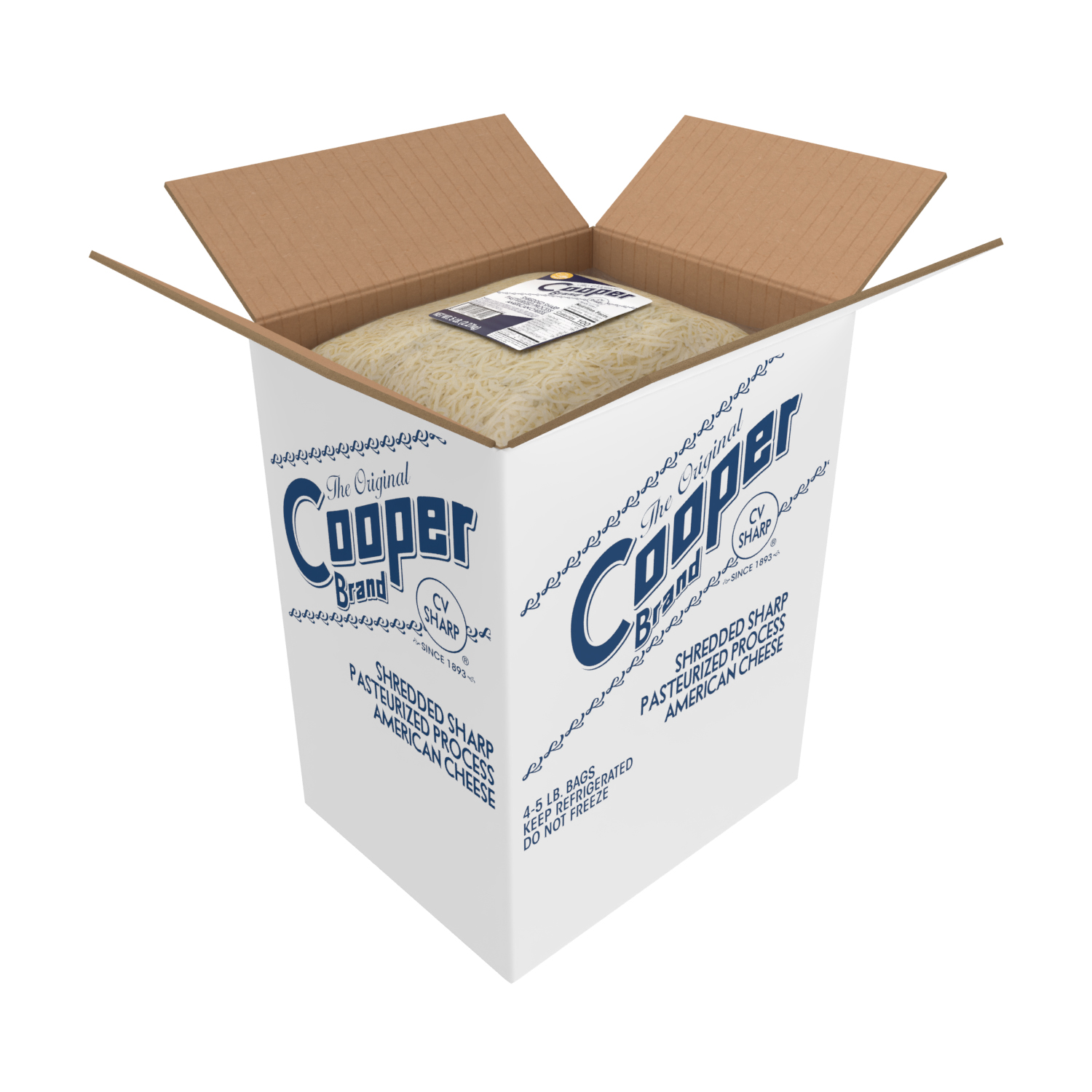 The original, the champ. Cooper® Sharp White American is now in a bulk shredded format for easy and delicious ingredient and restaurant applications. Made with milk and cut as a feather shred, it melts like a dream. Our branded case contains four 5-lb bags of shredded cheese. For additional information, please visit www.coopercheese.com.